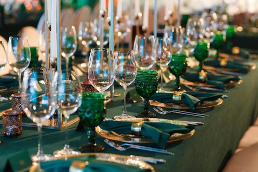 Dunkle Töne wie Marineblau, Waldgrün oder Burgunderrot werden zunehmend beliebter in der Hochzeitsdekoration. Sie können eine moderne sowie zeitlos klassische Atmosphäre schaffen, abhängig von der Art ihrer Anwendung. Dunkle Farben setzen starke Akzente in der Dekoration und sorgen für eine dramatische und elegante Wirkung.